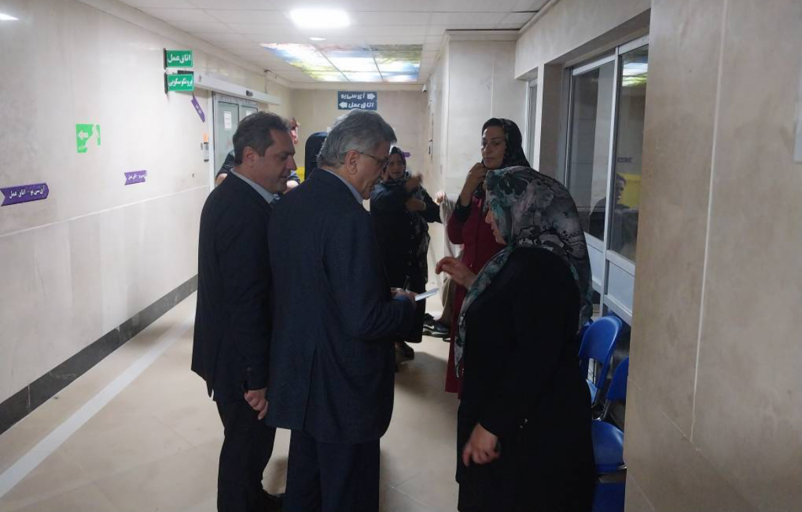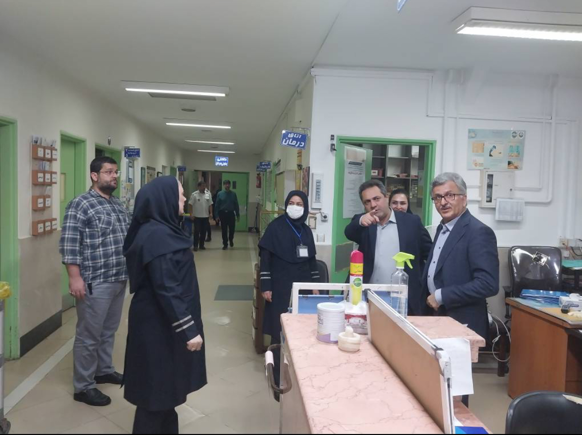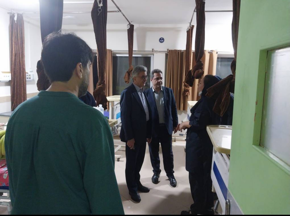 دکتر آشوبی از بخشهای مختلف بیمارستان، از جمله اورژانس، بخشهای بستری و اتاقهای عمل، بازدید و با پزشکان، پرستاران و خدمه حاضر در شیفت شب گفتوگو کرد.