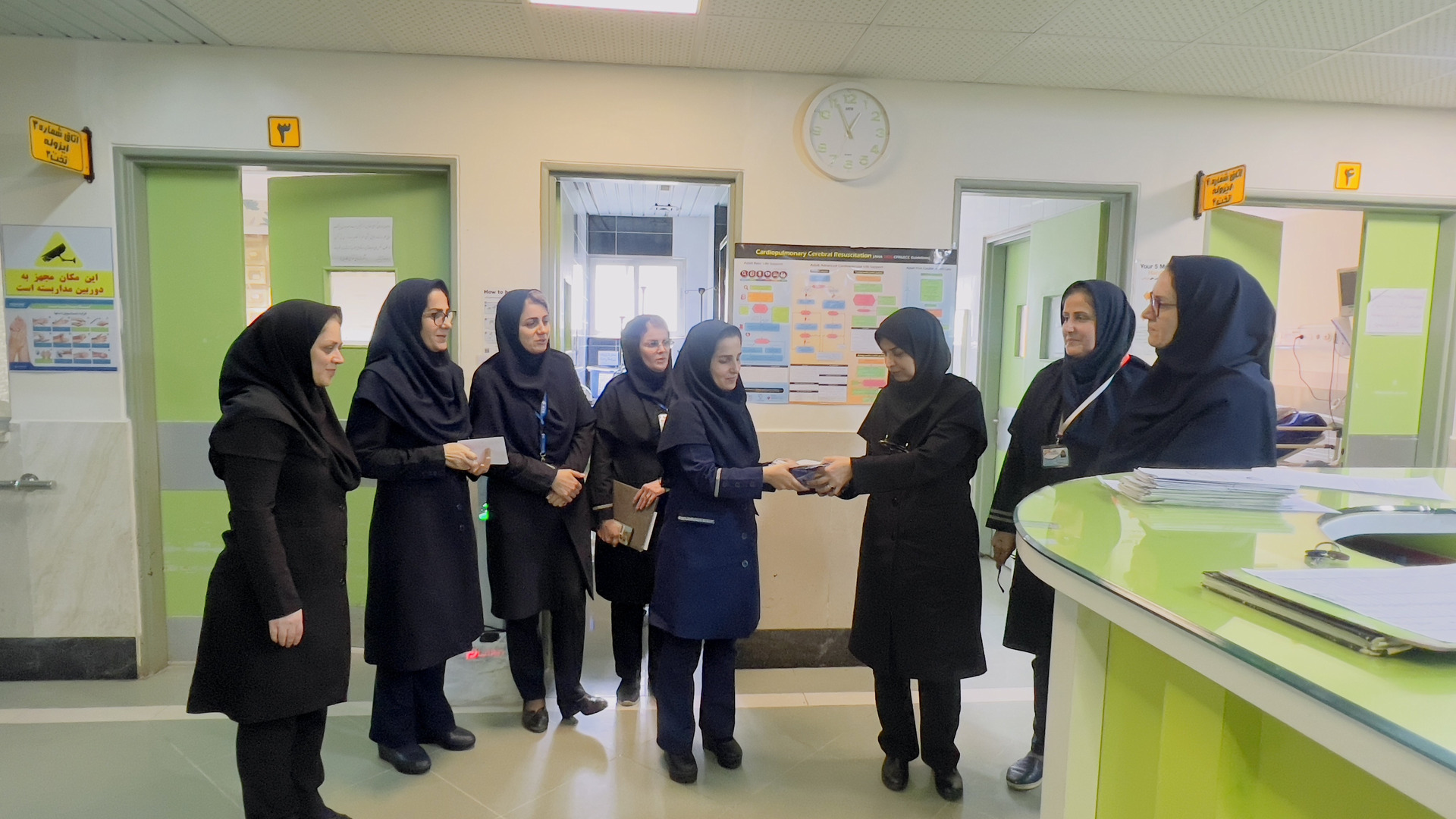 در این بازدید طلعت غلامین- کارشناس هماهنگ کننده ایمنی بیمارضمن تقدیر و تشکر از زحمات پرسنل بخش ها، به بیان توضیحاتی در مورد شعار و اهداف روز ایمنی سال2025 پرداخت.